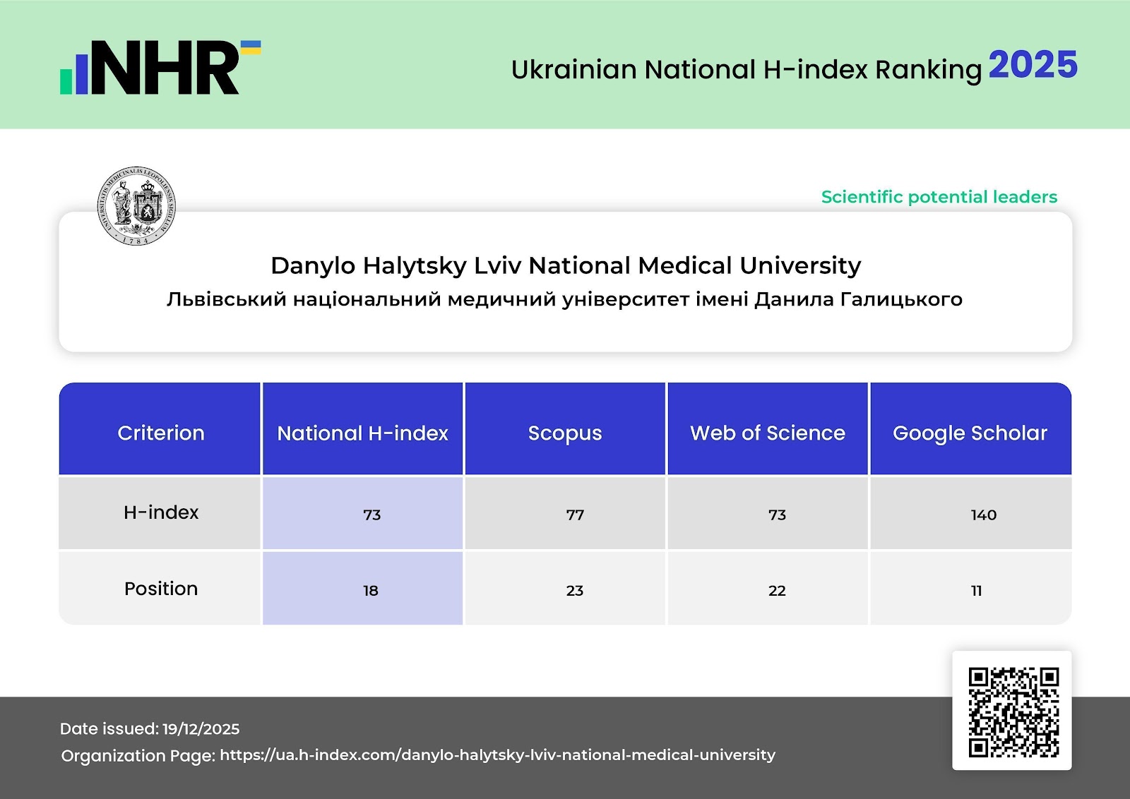2025 рік став важливим етапом утвердження наукового лідерства Львівського національного медичного університету імені Данила Галицького на національному рівні.