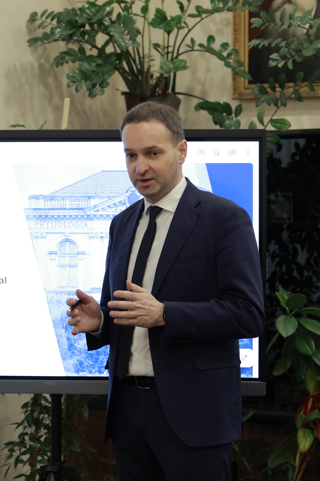 Йшлося про виклики та завдання, що постали перед ЛНМУ на шляху втілення пілотного проєкту з реформування вищої медичної освіти в Україні шляхом об’єднання в єдине ціле навчального закладу та медичної установи. Відтак, з’явилися нові можливості для якісної підготовки майбутніх медиків та надання високопрофесійної допомоги пацієнтам у новоствореній Університетській лікарні.