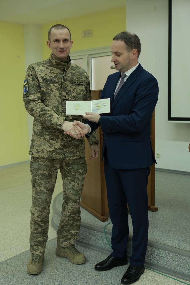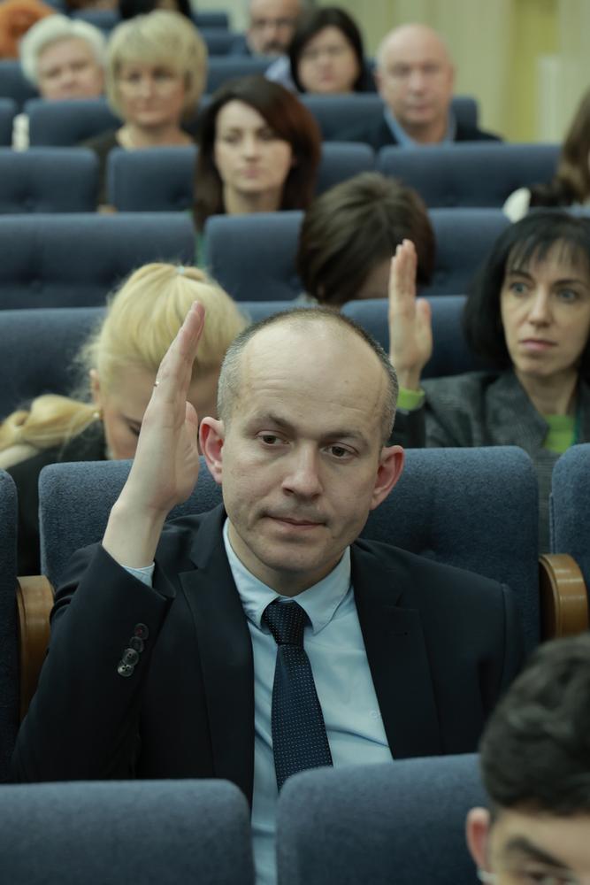 Голова Вченої ради ректор Університету професор Орест Чемерис привітав присутніх у залі жінок із сьогоднішнім святом – Днем української жінки та вручив атестати доцентів Наталії Дробінській з кафедри внутрішньої медицини № 1 та Максиму Логашу з кафедри нормальної анатомії.