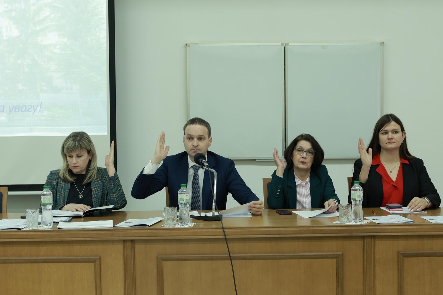 Члени Вченої ради шляхом голосування обрали керівників кафедр та погодили присвоєння вчених звань науково-педагогічним працівникам Університету.