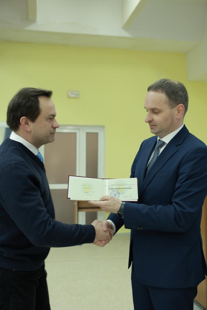 Сьогодні відбулося перше у цьому році засідання Вченої ради Львівського національного медичного університету ім. Данила Галицького. Головуючий на зібранні ректор Університету професор Орест Чемерис спершу виконав приємну місію – вручив атестати про присвоєння вчених звань та наукових ступенів представникам кафедр: диплом доктора медичних наук зі спеціальності «Гістологія» отримала завідувачка кафедри гістології, цитології та ембріології доцентка Ілона Челпанова; зі спеціальності «Онкологія» отримав Ярема Роман – доцент кафедри онкології і радіології ФПДО; атестат доцента – Маркіян Соловій (кафедра хірургії № 2).