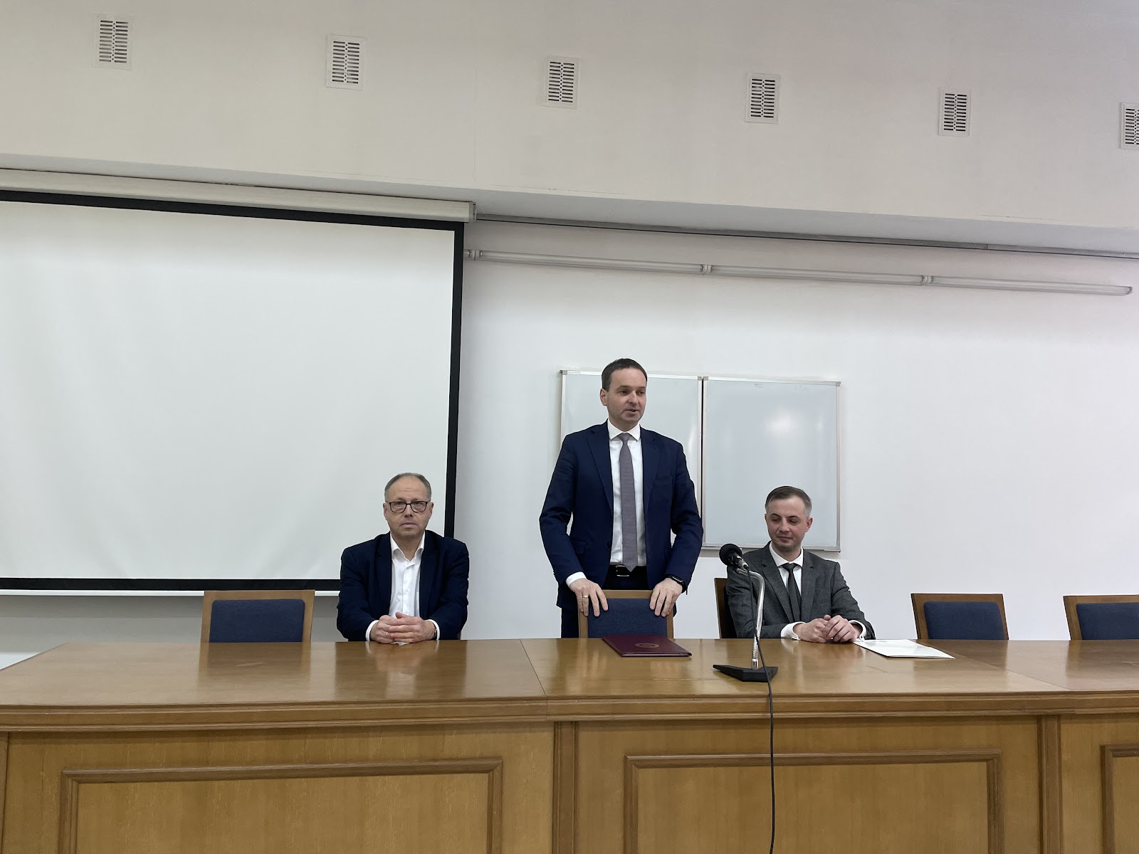 Своєю чергою, новопризначений в.о.директора Стоматологічного медичного центру доцент Володимир Вовк щиро подякував за надані можливості та довіру і запевнив, що зробить усе можливе, аби підрозділ динамічно розвивався, створюючи нові підходи для здобувачів освіти та пацієнтів, які сюди звертаються.