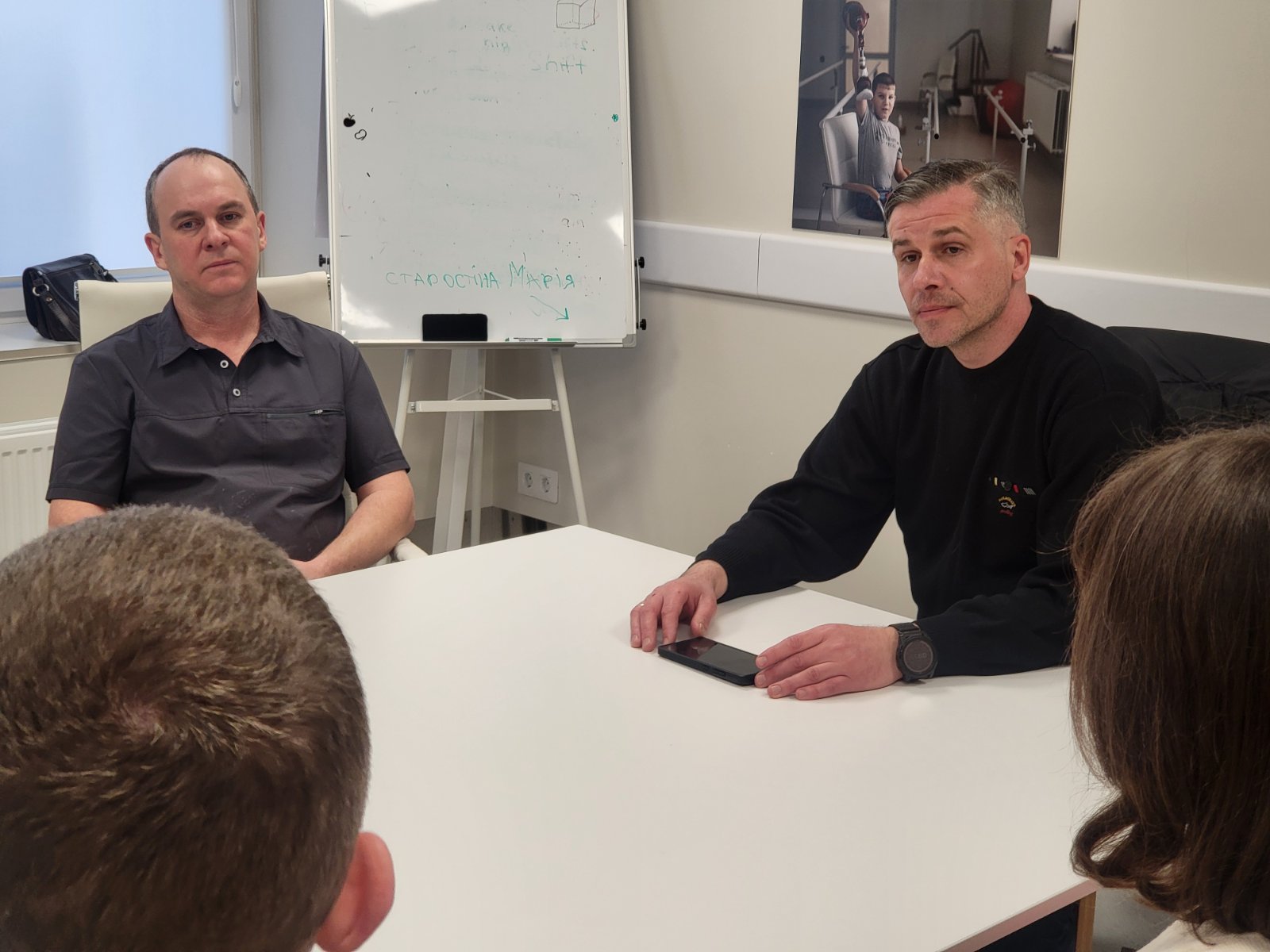 Студенти другого (магістерського) рівня освітньо-професійної програми «Протезування-ортезування» ЛНМУ ім. Данила Галицького зустрілися з гарантом програми, доцентом кафедри травматології, ортопедії та воєнно-польової хірургії Назаром Гнатейком. До спілкування зі здобувачами освіти долучився декан медичного факультету №2 доцент Олег  Капустинський.
