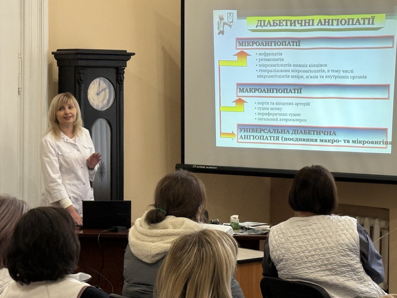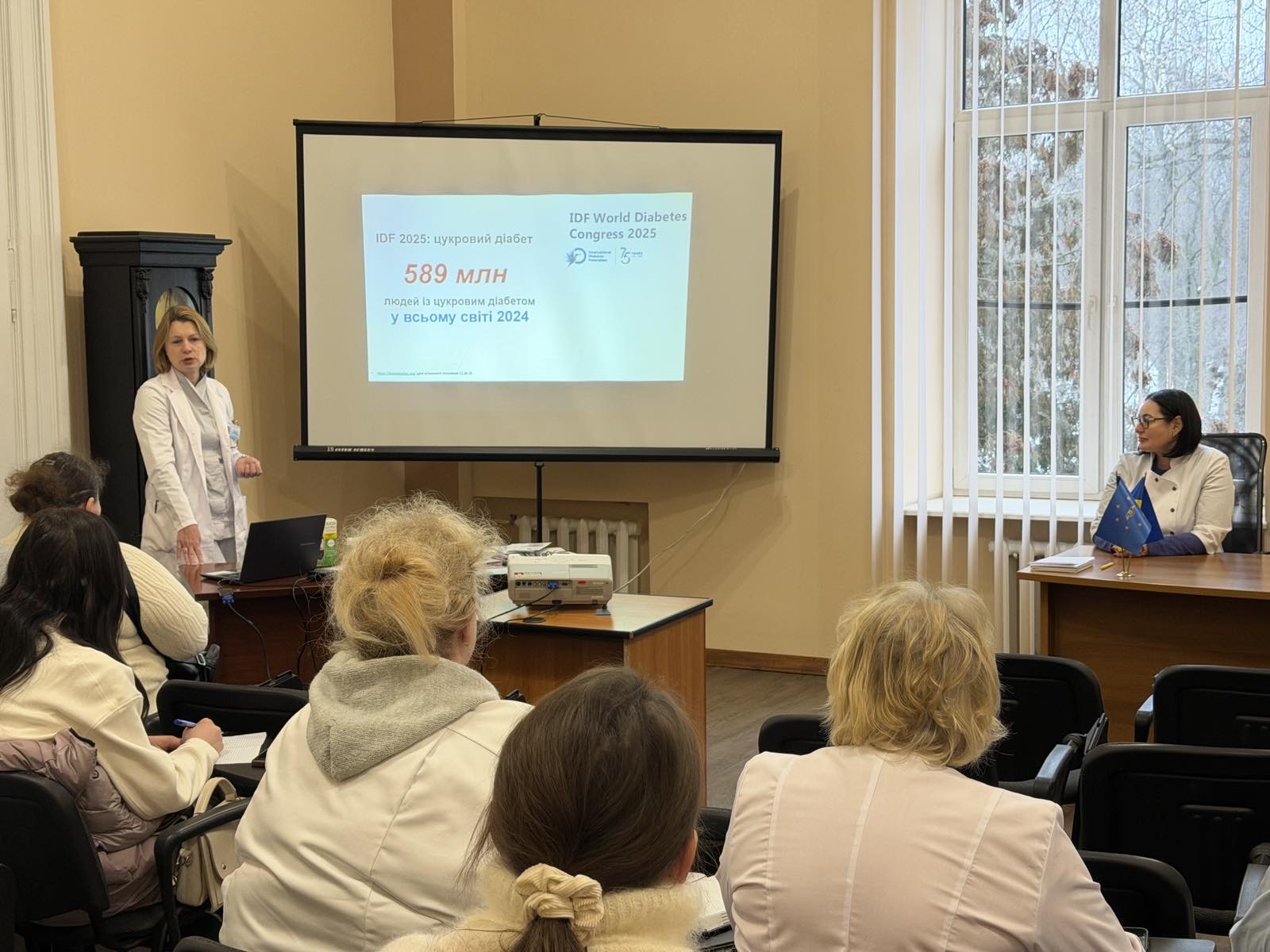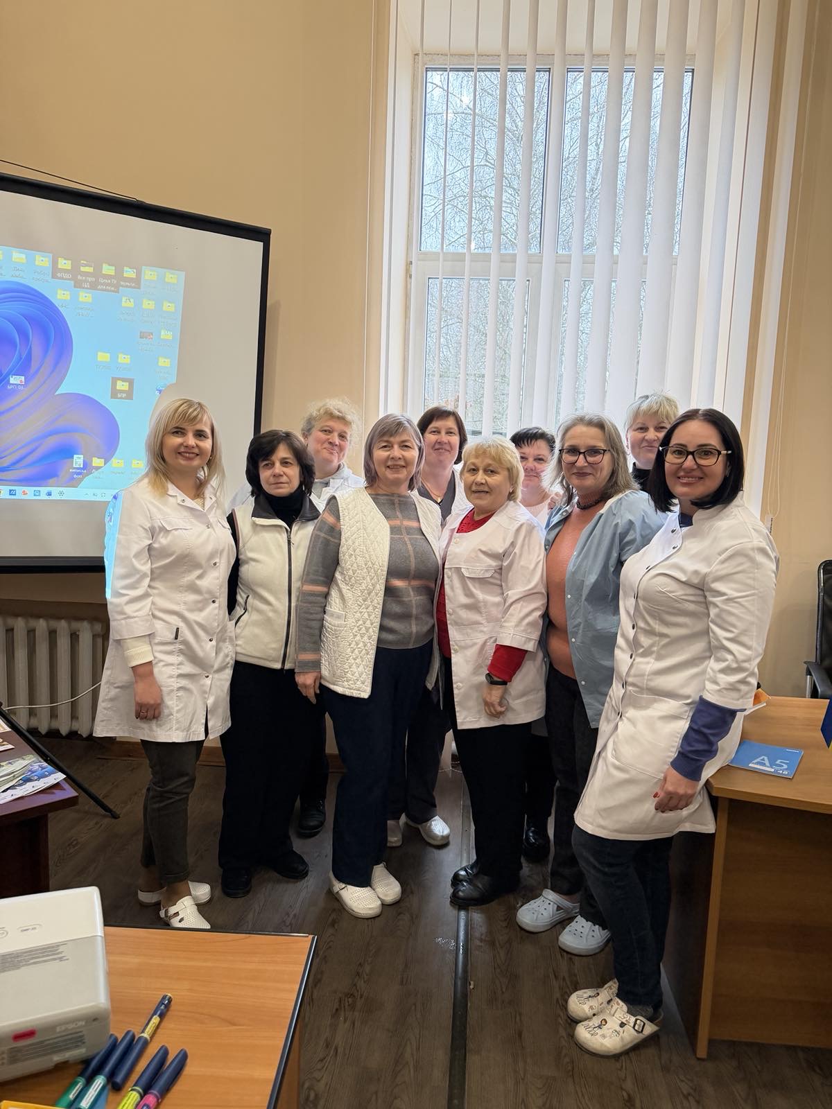 Під час занять, окрім теоретичних знань, зосередилися на практичних аспектах догляду за пацієнтами зокрема: ознайомилися з методикою користування глюкометром, вивчили техніку введення інсуліну, обговорили інтерпретацію показників глюкометрії та правила ведення щоденника самоконтролю.